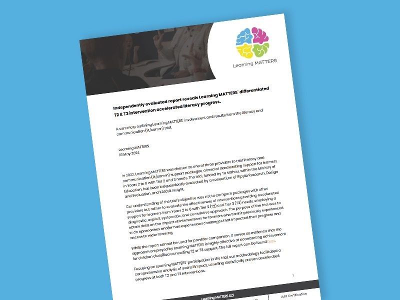 Independently evaluated report reveals Learning MATTERS’ differentiated T2 & T3 intervention accelerated literacy progress.
