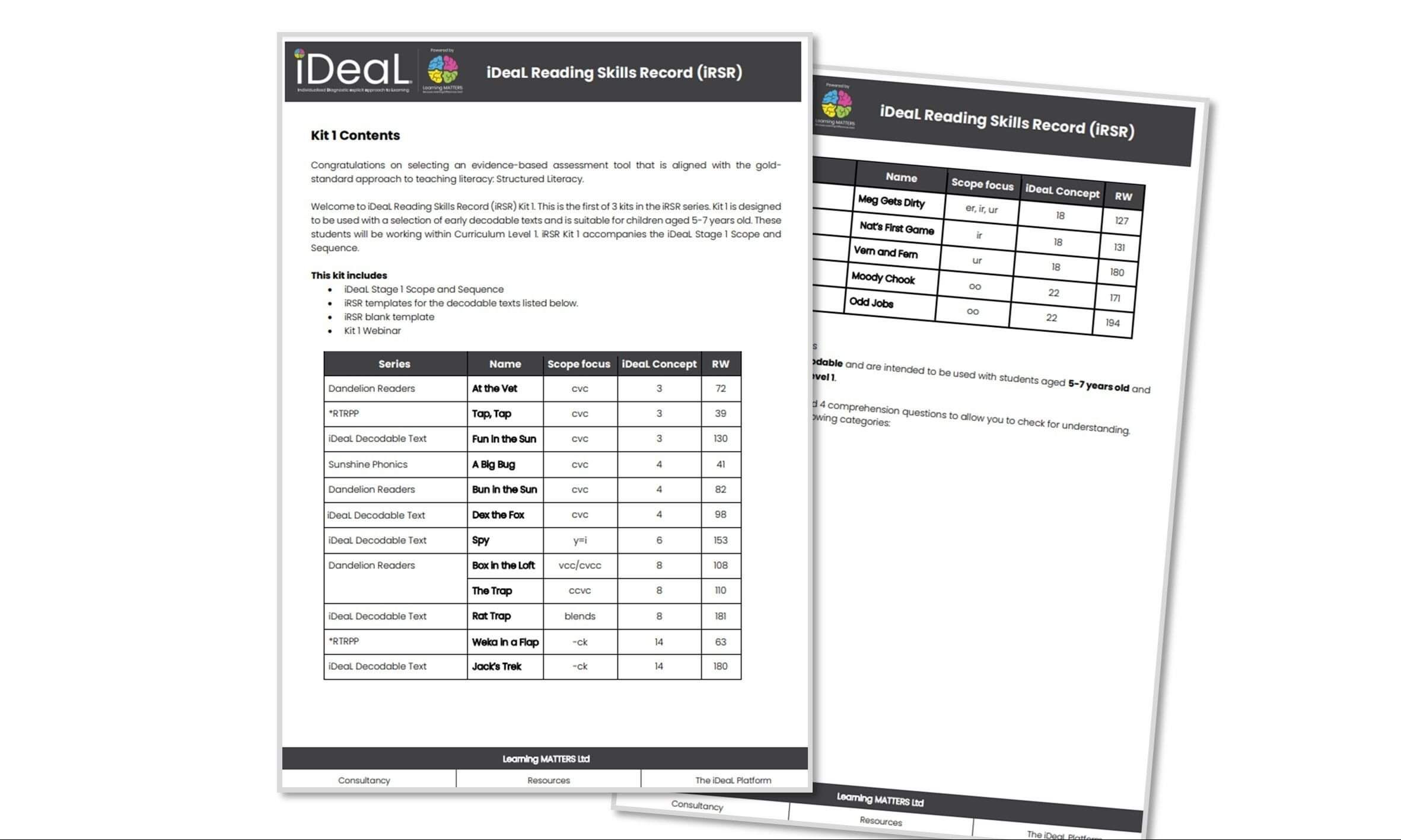 Welcome to iDeaL Reading Skills Record (iRSR) Kit 1.