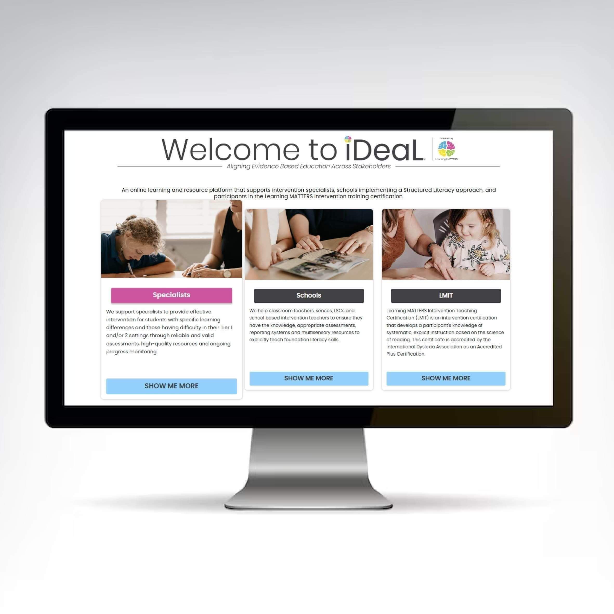The iDeaL Specialist Platform, features extensive resources, assessments, and reporting systems. It includes:
